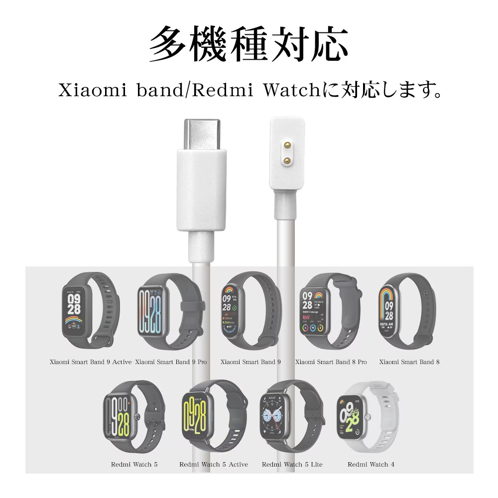 Xiaomi Smart Band Redmi Watch 充電ケーブル タイプC マグネット式充電バンド バンドを付けたまま充電可能 USB Type C to Xiaomi Smart Band ケーブル 1.0メートル 1m 100cm ホワイト R10CACXB01WH