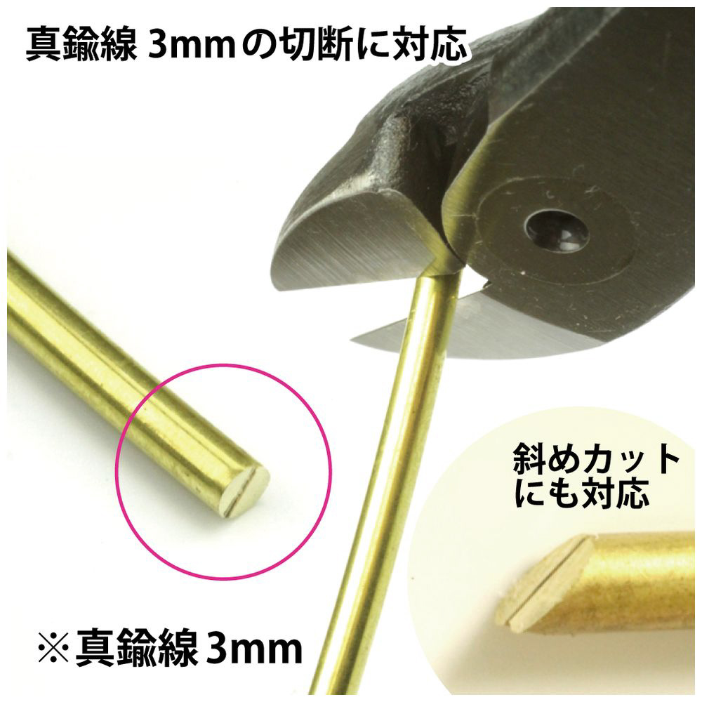 1/4フィギュアの軸などに利用される真鍮線Φ3mmを、ほぼ平らな切り口でカットできます。
