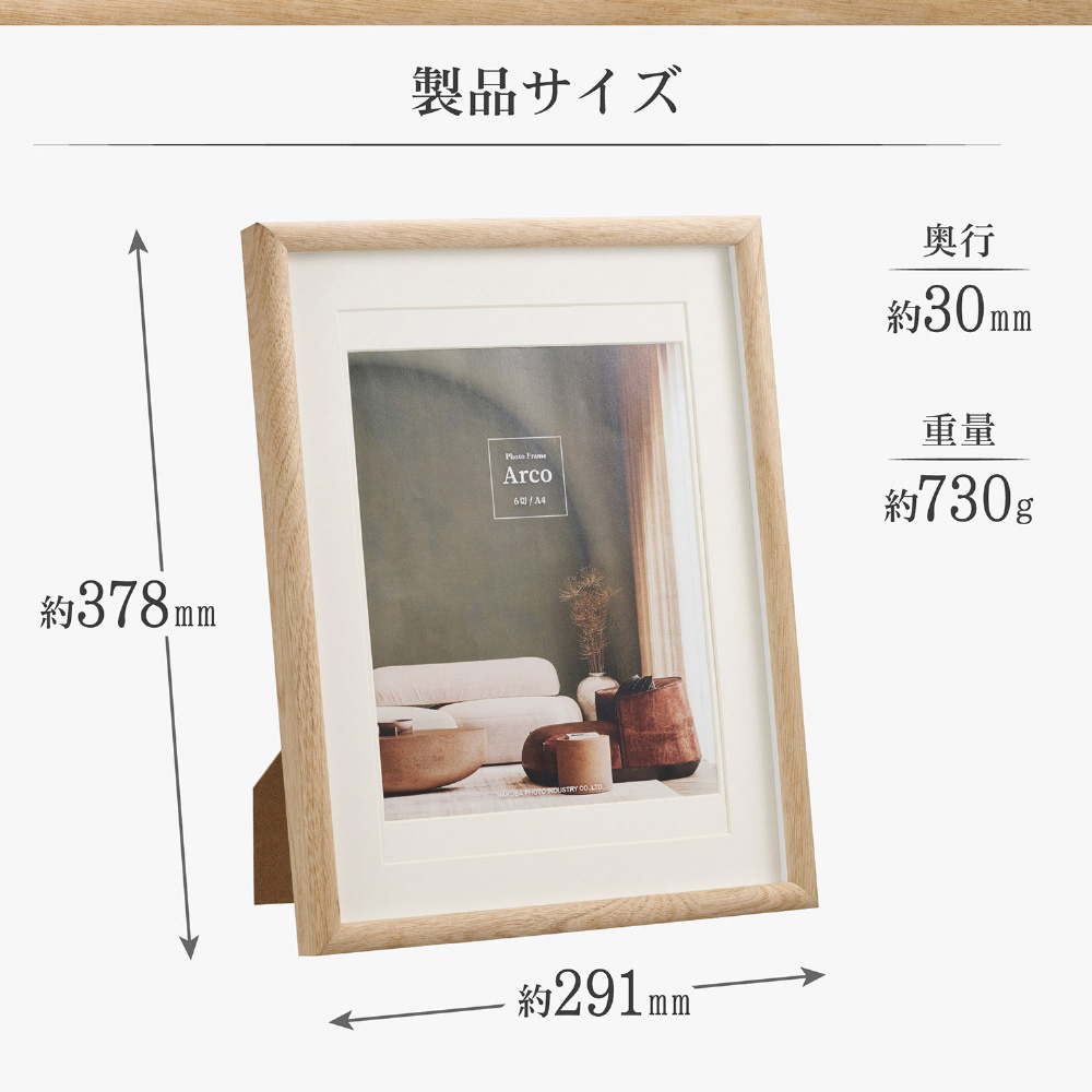 フォトフレーム Arco (アルコ) 6切 / A4 ナチュラル ナチュラル FWAR-6NT
