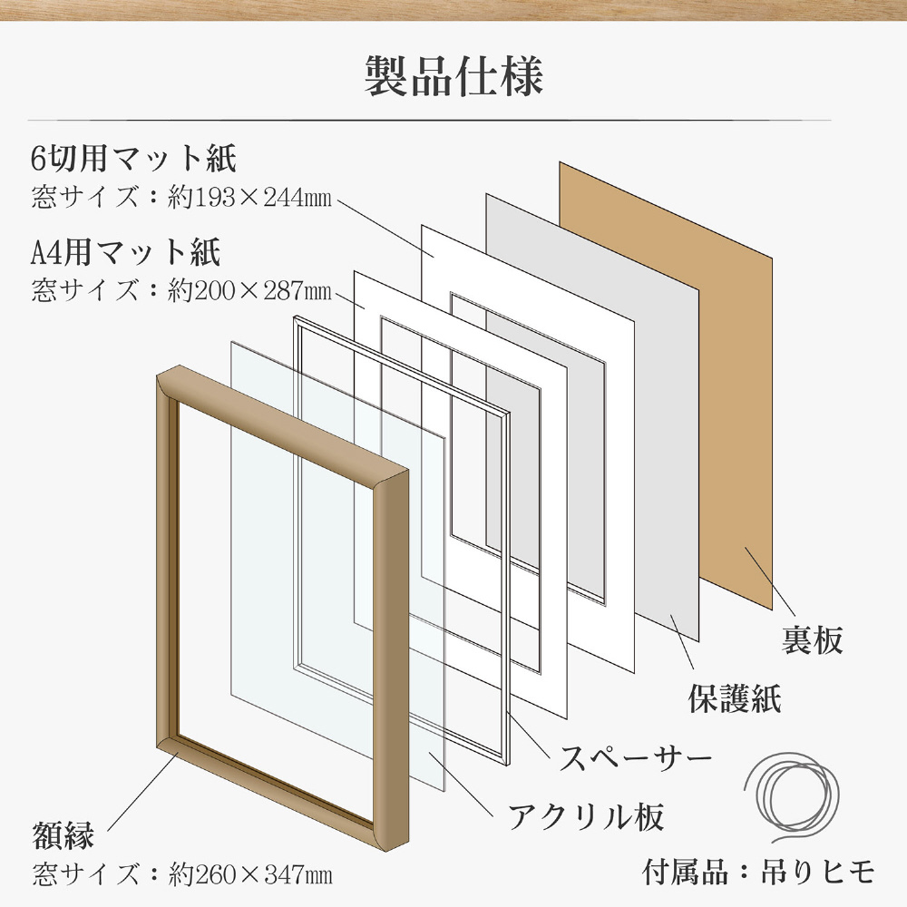 付属のマット紙を入れ替えることで、六切サイズ、A4サイズに対応します。