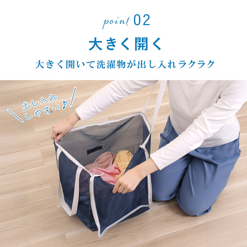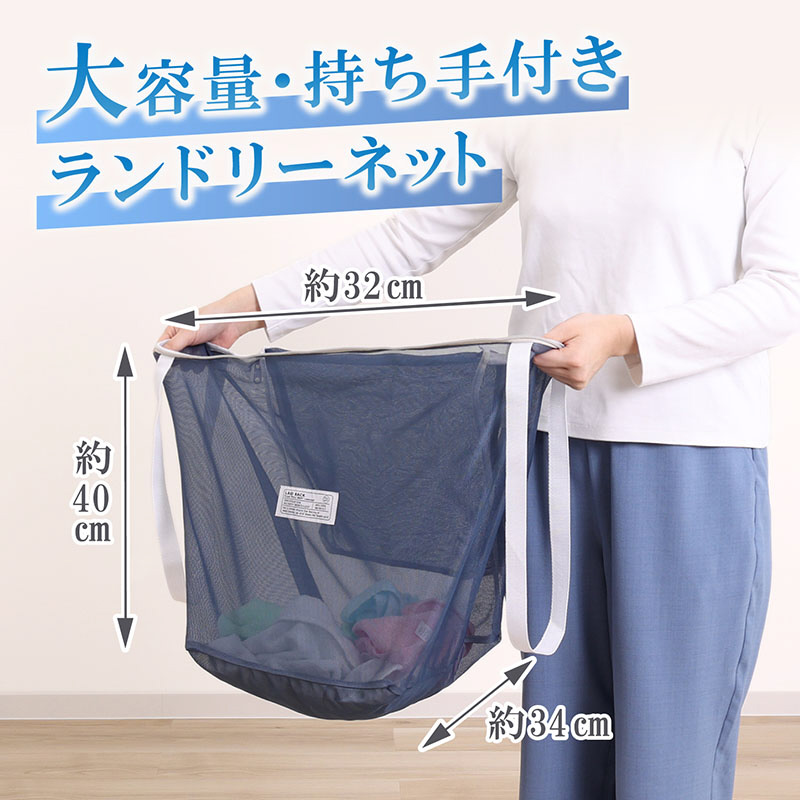 サイズ/約幅32×奥行34×高さ40cm、カラー/ネイビー、内容/1個、材質/[ネット]ポリエステル [ファスナー]ナイロン・ポリプロピレン