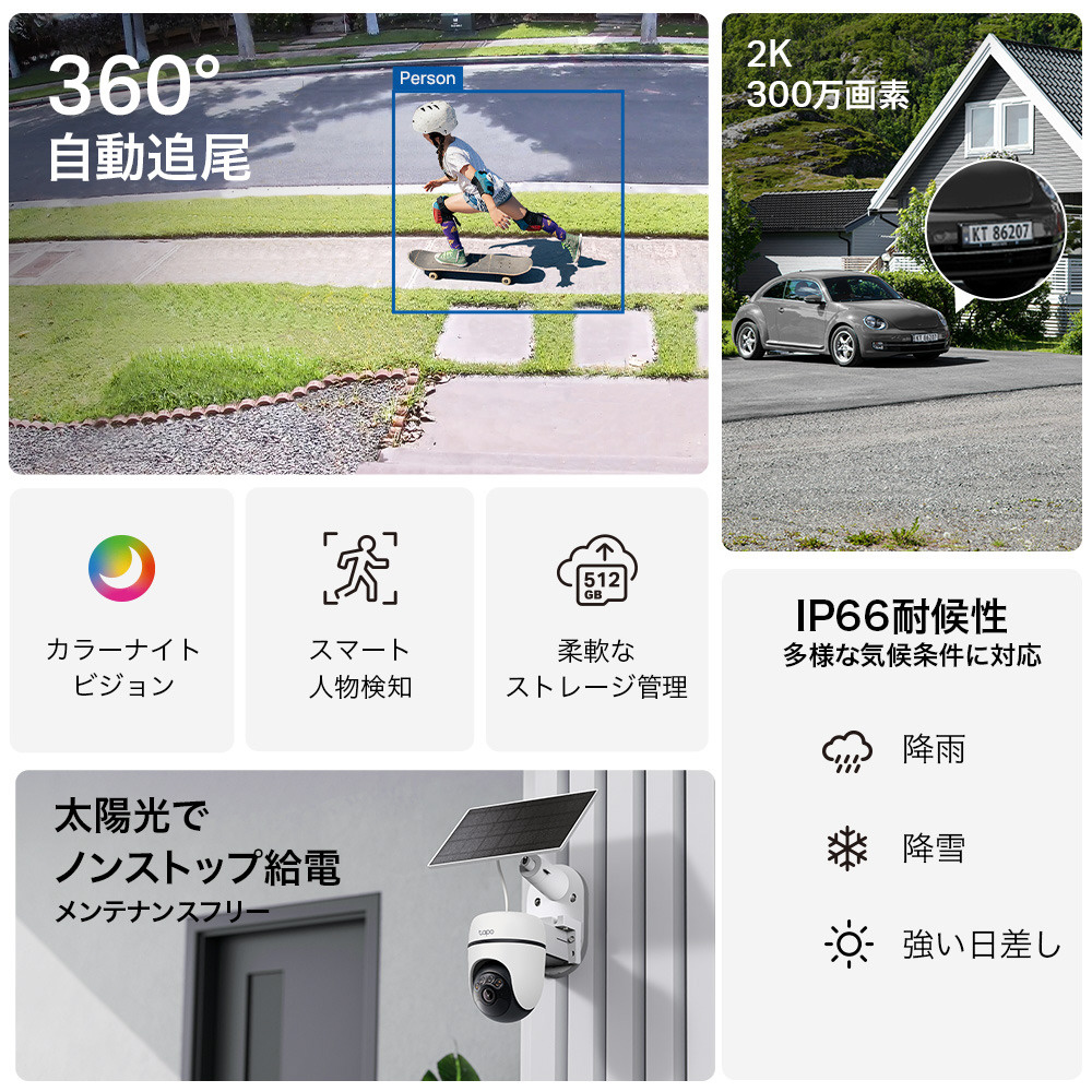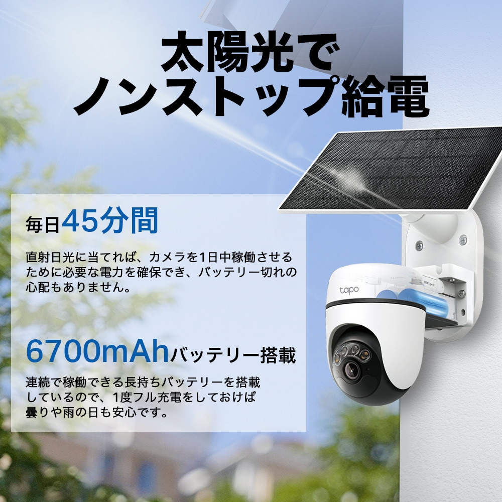 配線不要、360°くまなく見守る。屋外対応ソーラー給電パンチルトネットワークカメラキットTapo C610 KIT