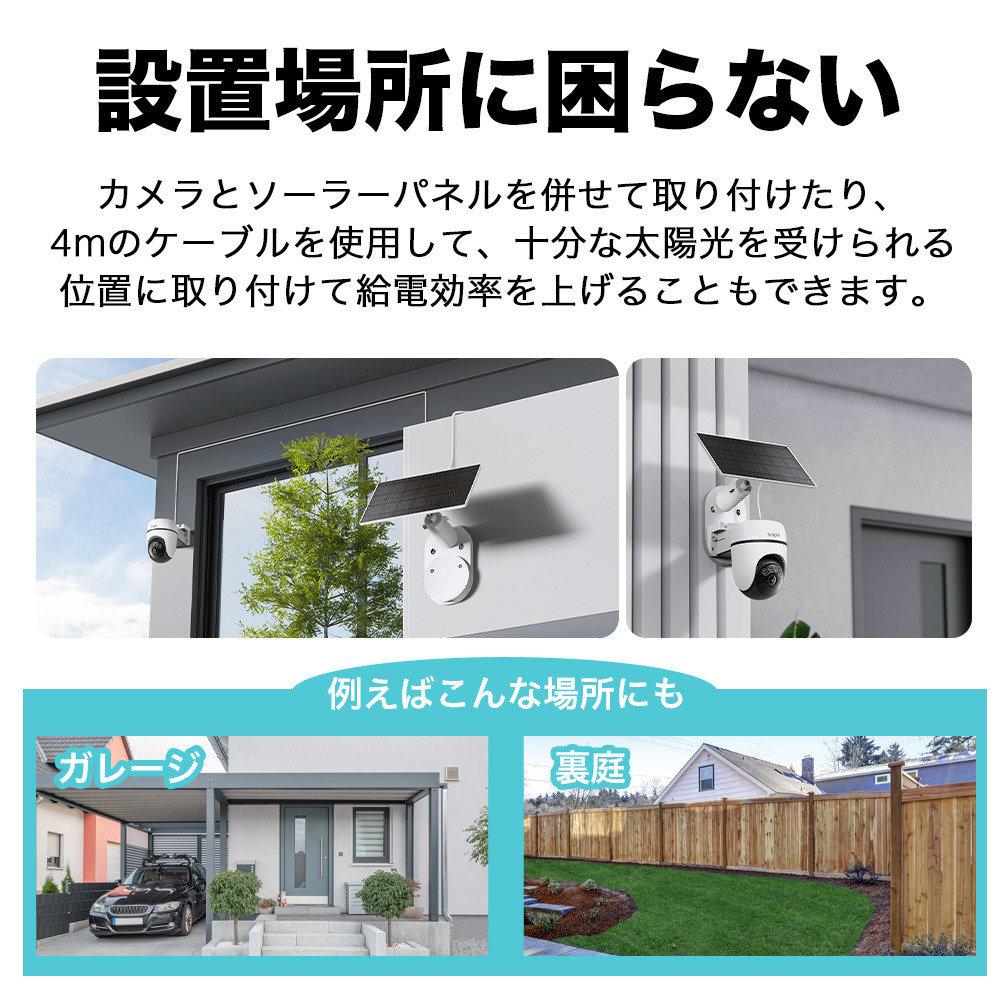 継続的な電力供給&柔軟に設置できるTapoソーラーパネルで、メンテナンスフリーのセキュリティ対策を行うことが可能です。
