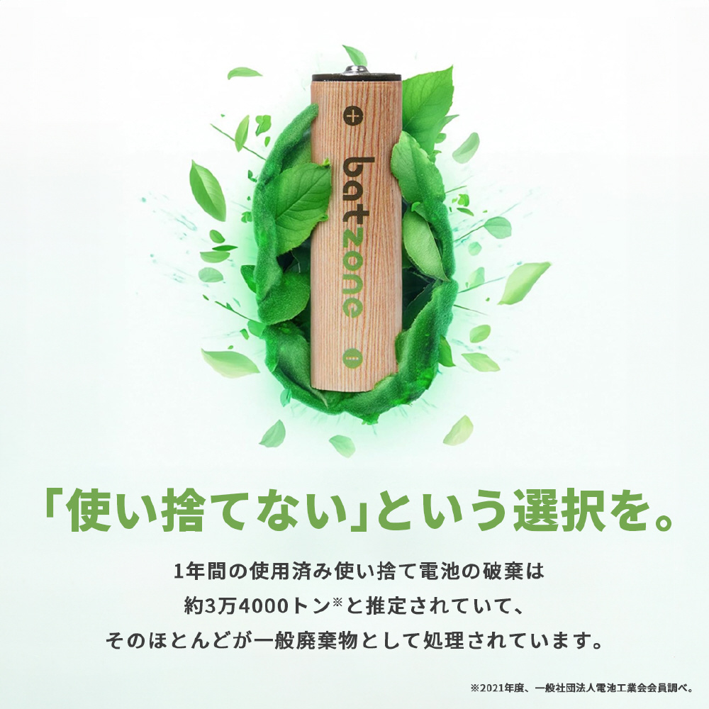 batzone リチウムイオン電池 単3(2本入り) Type-Cケーブルなし P2-LI2A-2220C-2