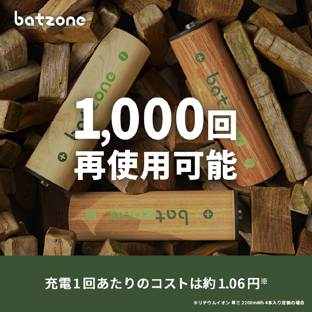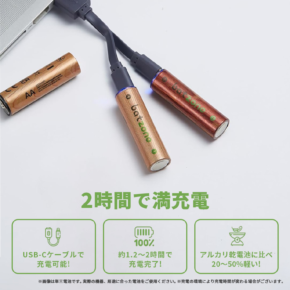 batzone リチウムイオン電池 単4(2本入り) Type-Cケーブルなし P2-LI3A-666C-2