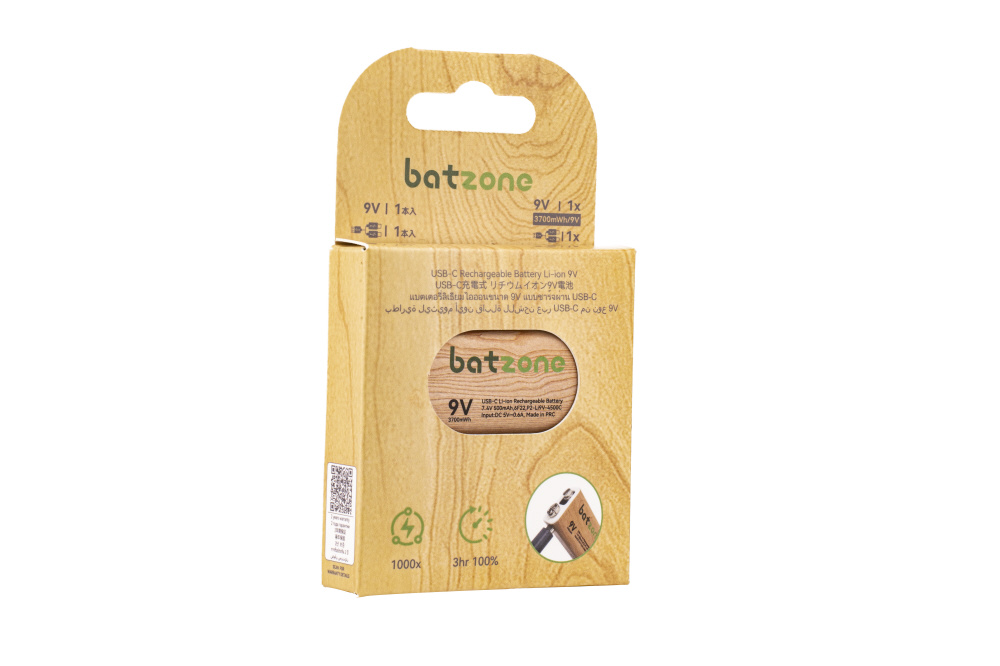 batzone リチウムイオン充電池 9V(1本入り) Type-Cケーブル付 P2-LI9V-4500C-1