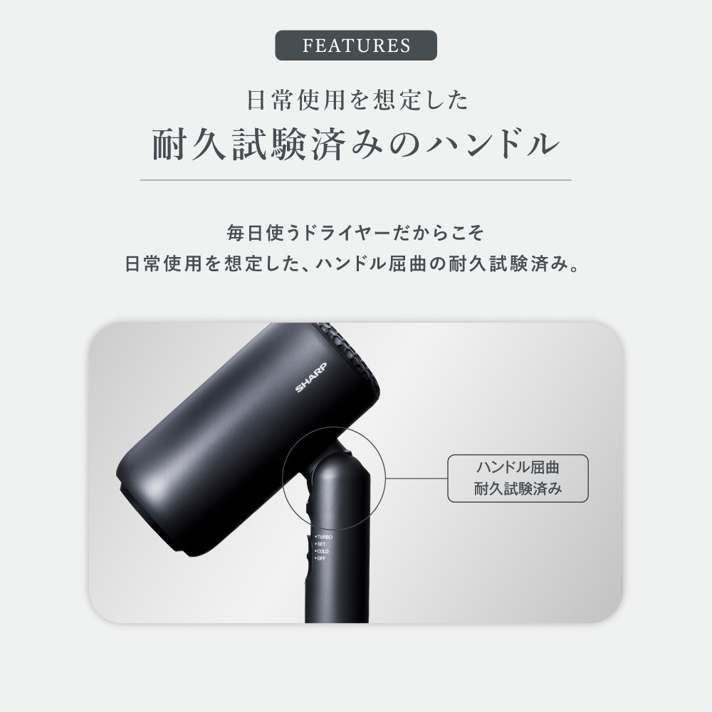 10万回以上の屈曲試験をクリアした「二重被覆コード」と「コードプロテクター」で断線故障を抑制。日常使用を想定したハンドル屈曲の耐久試験済み。