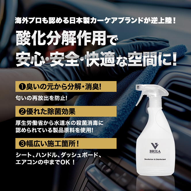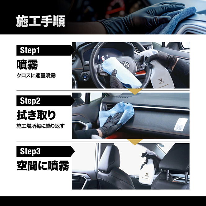シート、ハンドル、ダッシュボード、エアコン内部も簡単除菌。