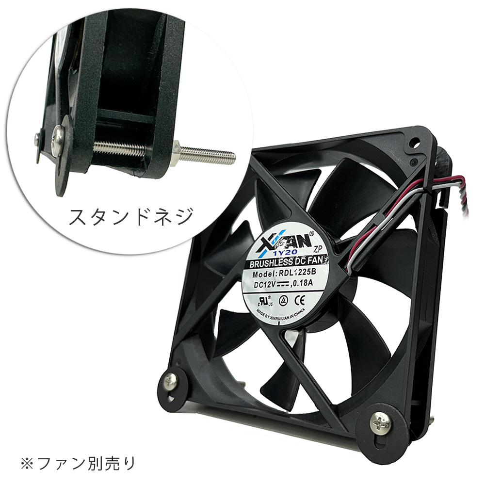 便利なファン用スタンドネジ付で転倒を防止し、安定した設置が可能です。