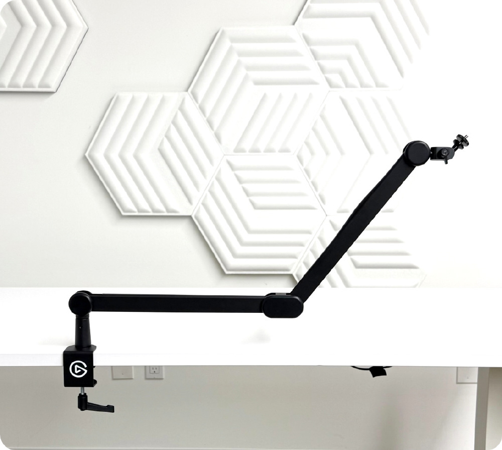 Wave Mic Armは、マイクを近くに配置しつつ、モニターの上やテーブルの向こうまで自由に届く動きを可能にします。配信やポッドキャストに理想的で、滑らかで静かな動作、スリムな金属製アーム、内蔵ケーブルチャンネルにより、見た目もすっきり。最大1.2kgまでのマイクを取り付け可能で、360度回転で理想的な位置に調整できます。パッド付きクランプでほとんどのデスクに対応し、高さを150mm追加できるライザーも付属。