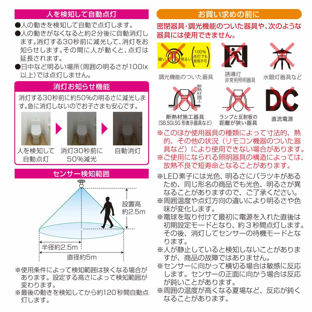 ●人の動きがなくなると約2分後に自動消灯