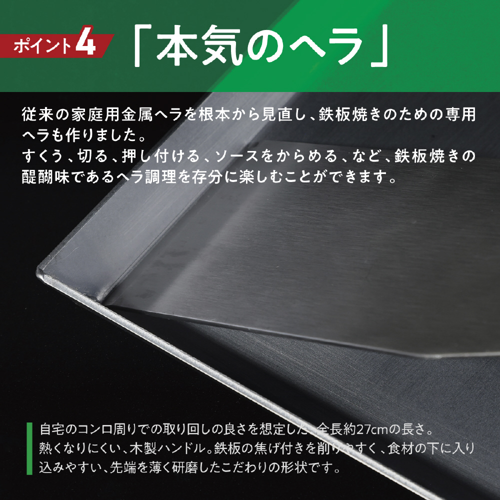 特に直角にこだわったことで、ヘラと鉄板のカドがぴったりと合い、スペースを有効活用できます。