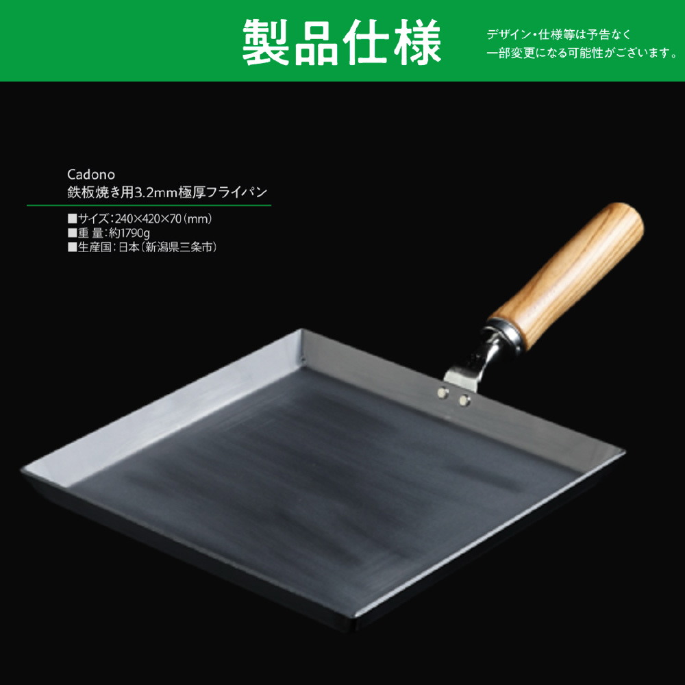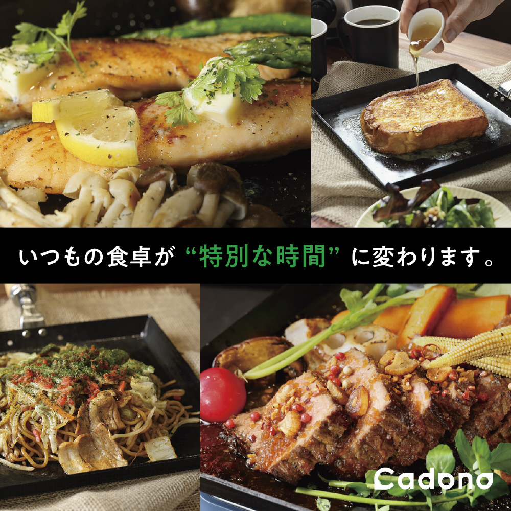 Cadono 鉄板焼き用3.2mm極厚フライパン[角型24cm鉄板フライパン]