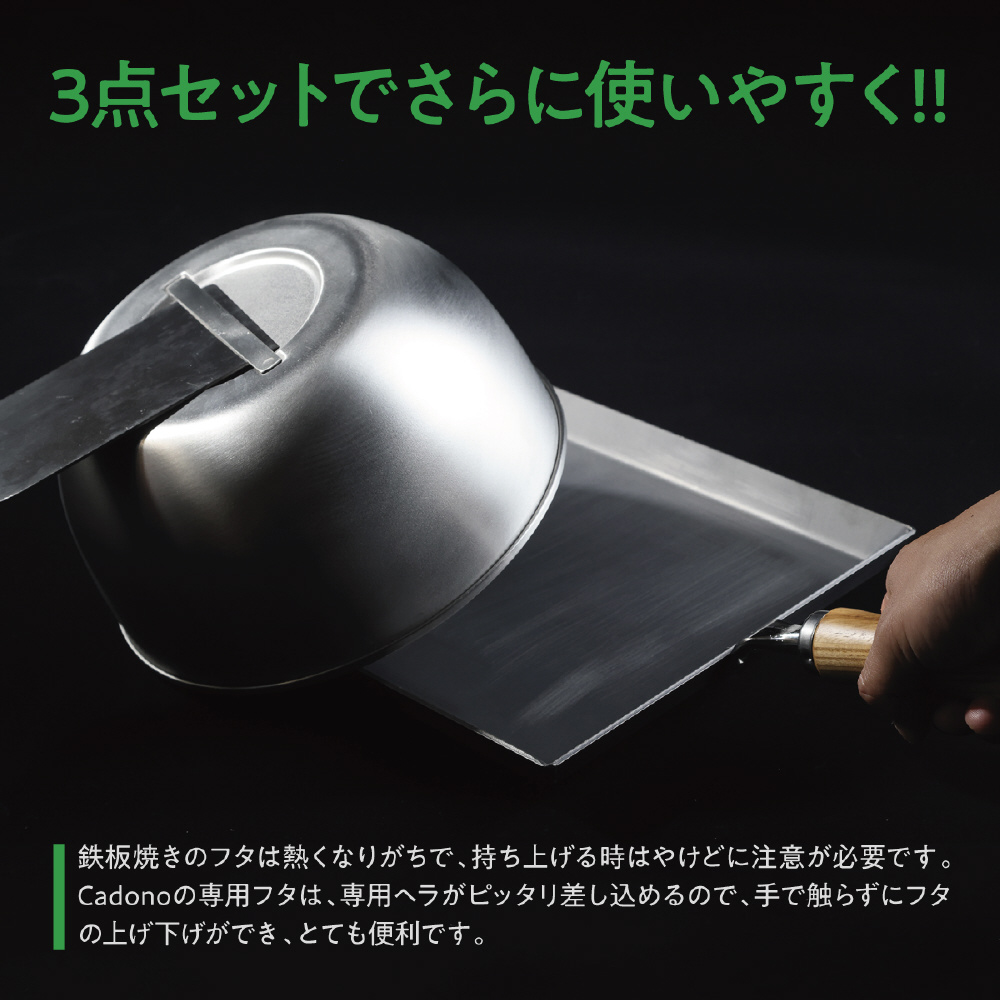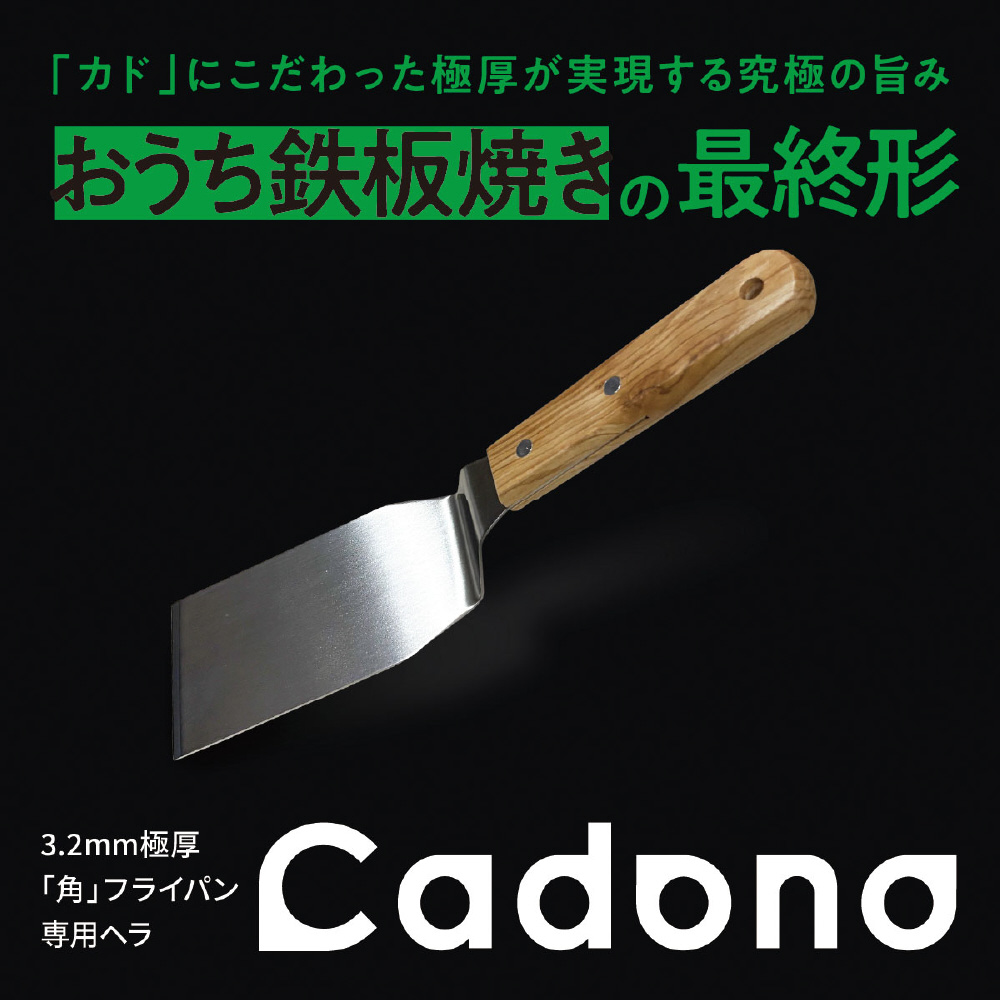Cadono 鉄板焼き用3.2mm極厚フライパン 専用ヘラ[カドにピッタリ 直角ヘラ]