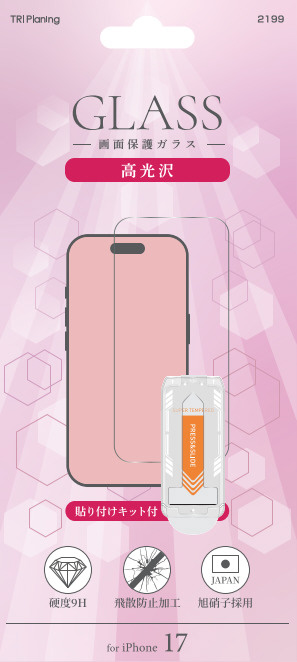 iPhone 17 ガラスフィルム 貼り付け簡単 TRP-EG171P-CLR