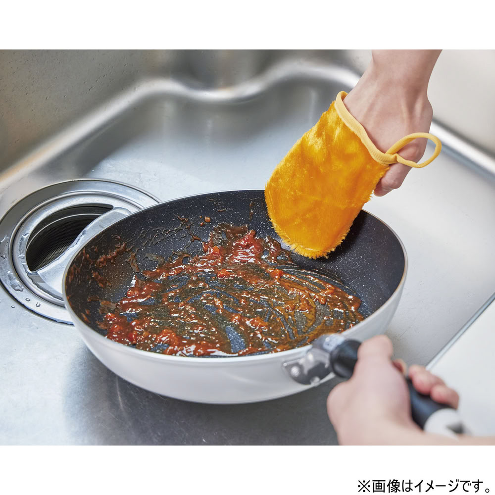 余分な汚れをサッと落とす魔法のミトン。しつこい汚れの予洗いにピッタリ。