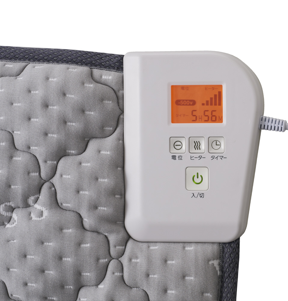 電位治療やヒーターのオンオフ、ヒーターの温度設定、タイマー設定状態が見やすい液晶パネルコントローラーです。