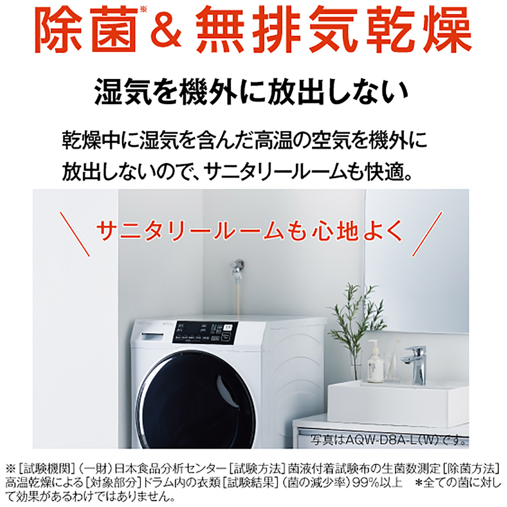 ドラム式洗濯乾燥機 AQUA ホワイト AQW-D8A-L(W) [洗濯8.0kg /乾燥4.5kg /ヒーター乾燥(水冷・除湿タイプ) /左開き]
