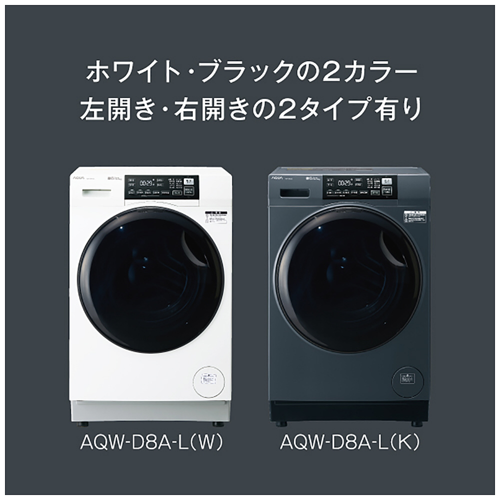 ドラム式洗濯乾燥機 AQUA サファイアブラック AQW-D8A-L(K) [洗濯8.0kg /乾燥4.5kg /ヒーター乾燥(水冷・除湿タイプ) /左開き]