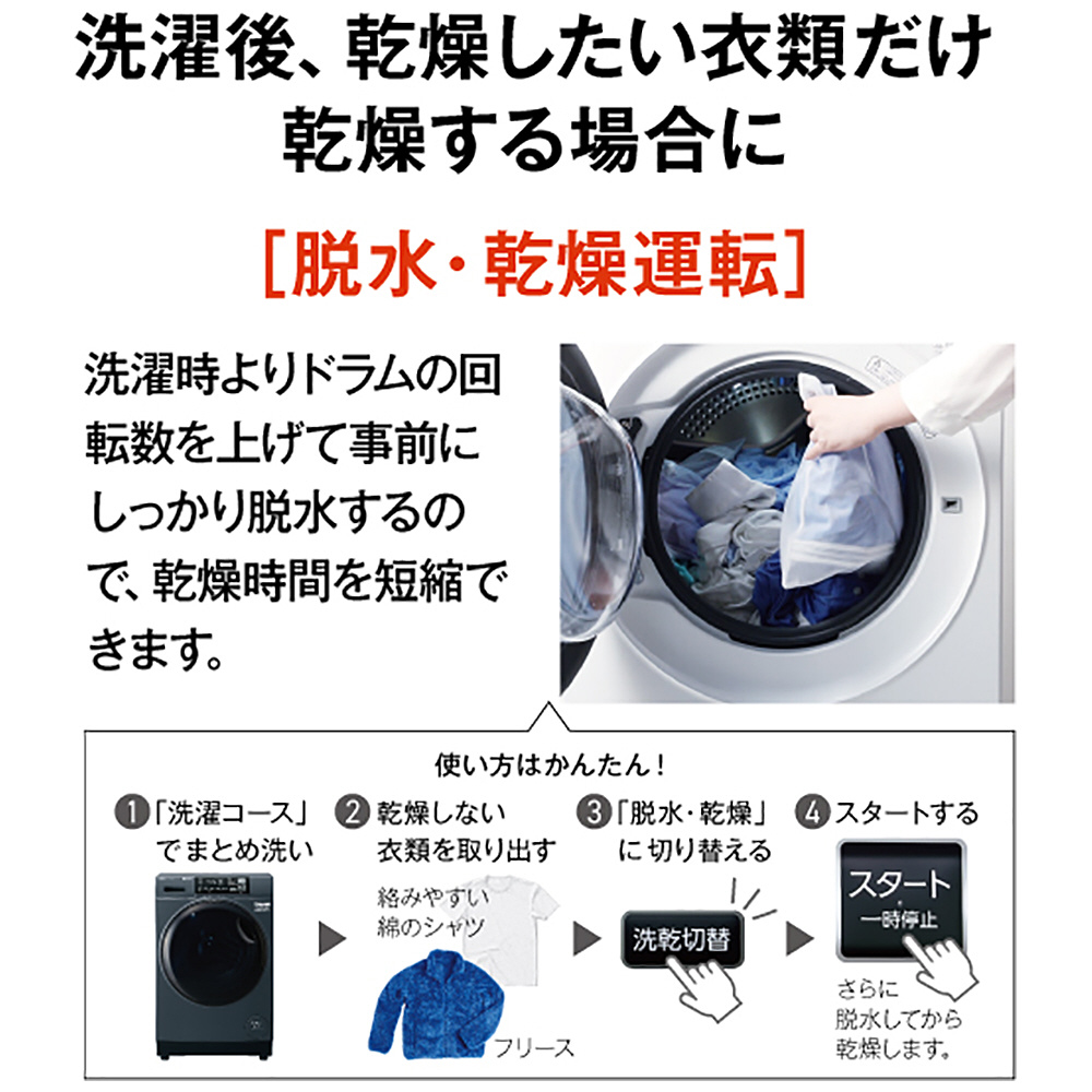 ・衣類をスピーディーに乾かす「高効率&除菌※3乾燥」