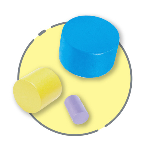 大中小の3サイズ×6色計18個のピース入り。
