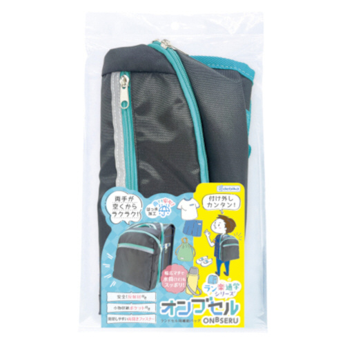 ランドセルに取り付けられる補助バッグです。荷物が多いとき両手に手提げ袋などを持って登下校すると転倒した場合にケガする可能性が増えたり、緊急時に防犯ブザーを使うこともできません。また、雨天時に傘をさすのも大変です。そういった問題を解消することができる便利な補助バッグです。