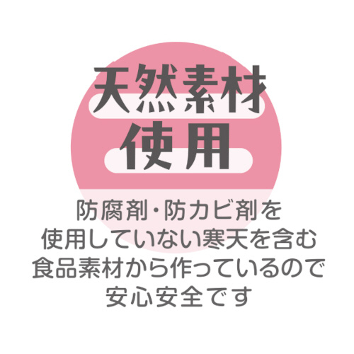 ・天然素材使用、防腐剤・防カビ剤を使用していない寒天を含む食品素材から作っているので安心安全です。