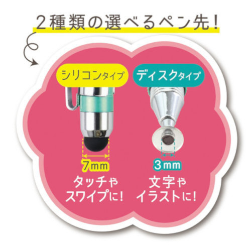 使い分けできる2種類のペン先。タッチやスワイプなどの画面操作に便利なシリコンタイプ。文字やイラストなど細かい操作に便利なディスクタイプ。