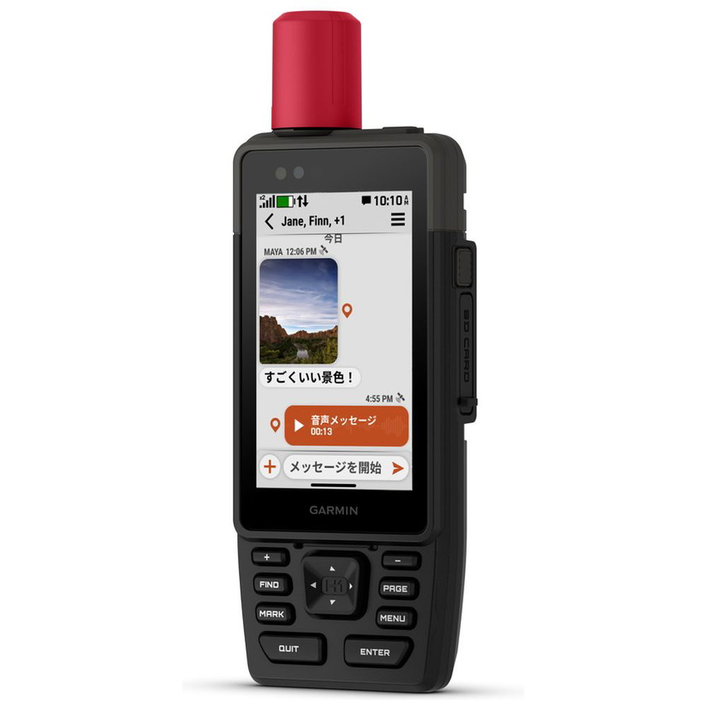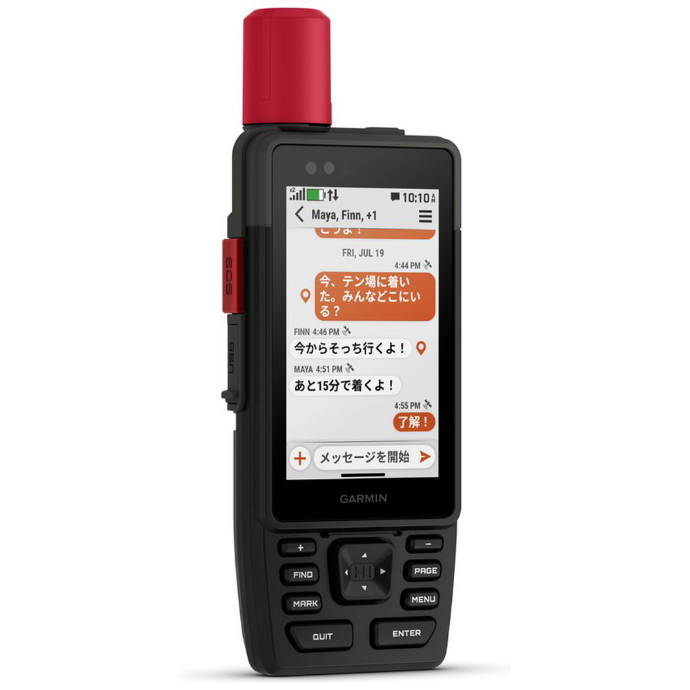 携帯電話の圏外エリアでも衛星を介して最大 1,600 文字のテキスト メッセージを衛星を介して送ることができます。写真や音声メッセージのやり取りも可能です。