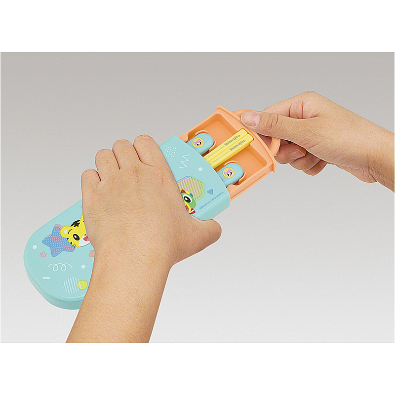 お箸・スプーン・フォークのトリオセットです。指で引き出すスライド式で衝撃に強く、分解できて洗いやすく、食洗機対応でお手入れも簡単。お箸には名入れスペース付き。名前シールが付いているのでお子様が幼稚園や学校で使用しても分りやすい。