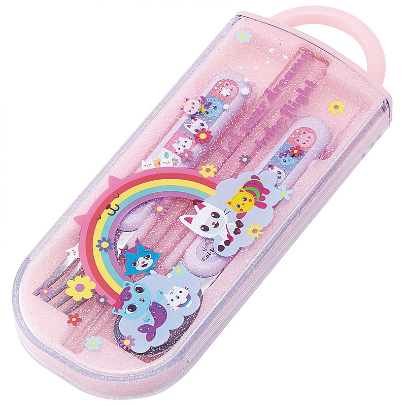 お箸・スプーン・フォークのトリオセットです。指で引き出すスライド式で衝撃に強く、分解できて洗いやすく、食洗機対応でお手入れも簡単。お箸には名入れスペース付き。名前シールが付いているのでお子様が幼稚園や学校で使用しても分りやすい。
