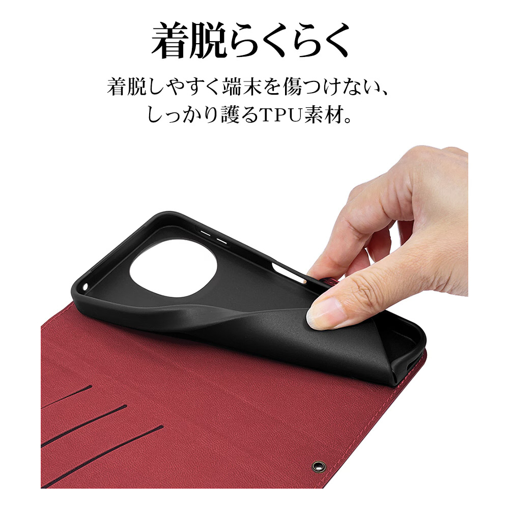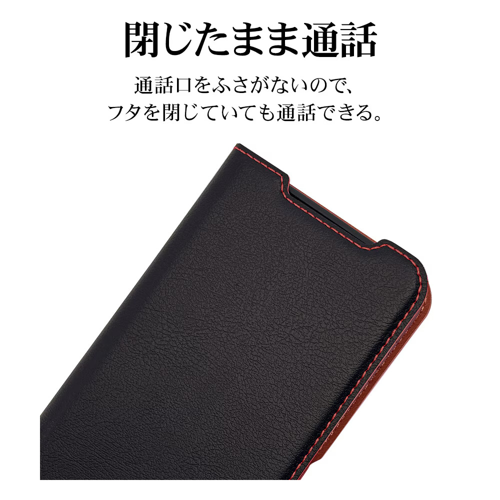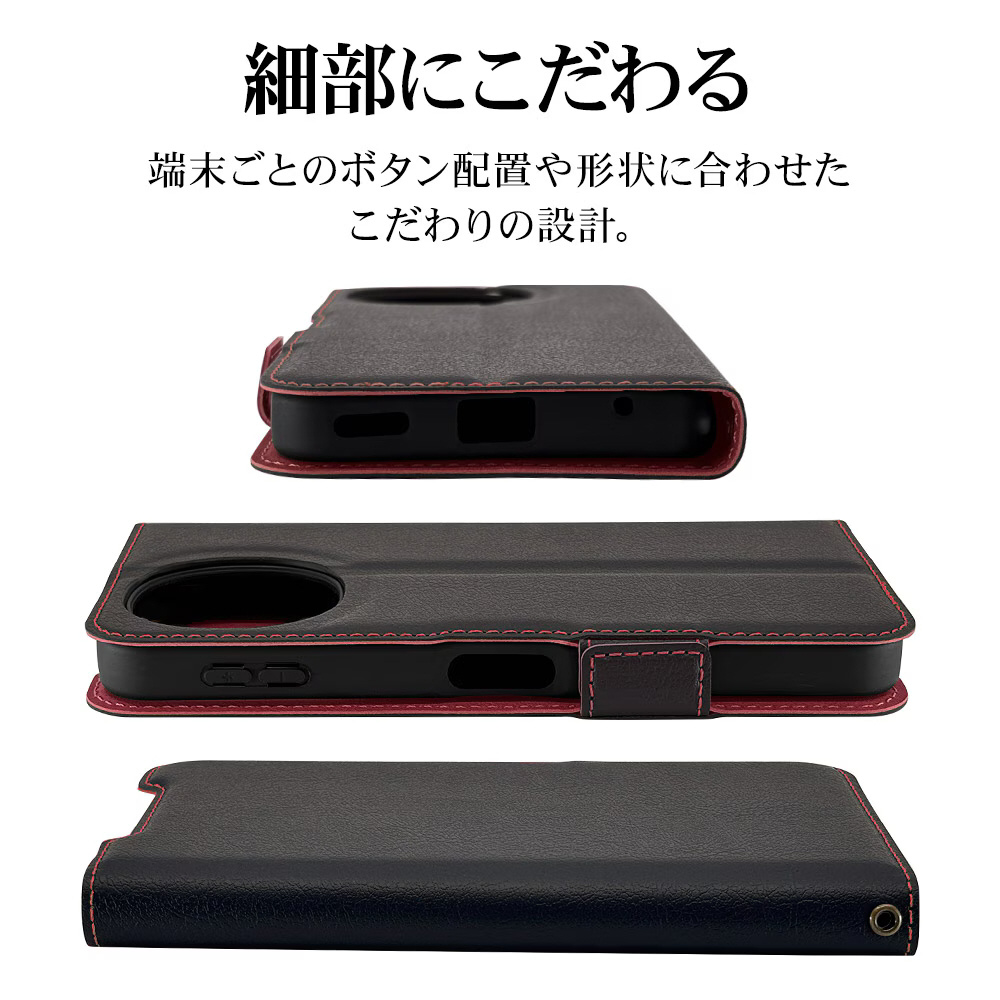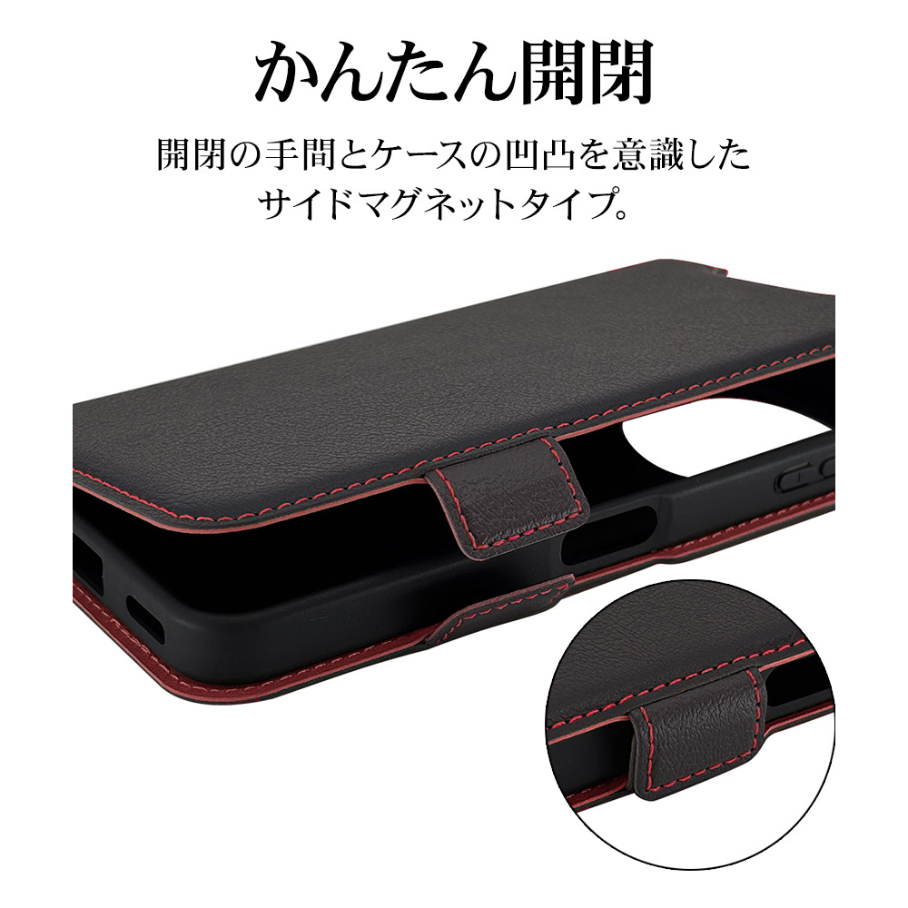 AQUOS sense10 薄型手帳サイドマグネットケース ブラック×レッド 9244AS10BSMBKR