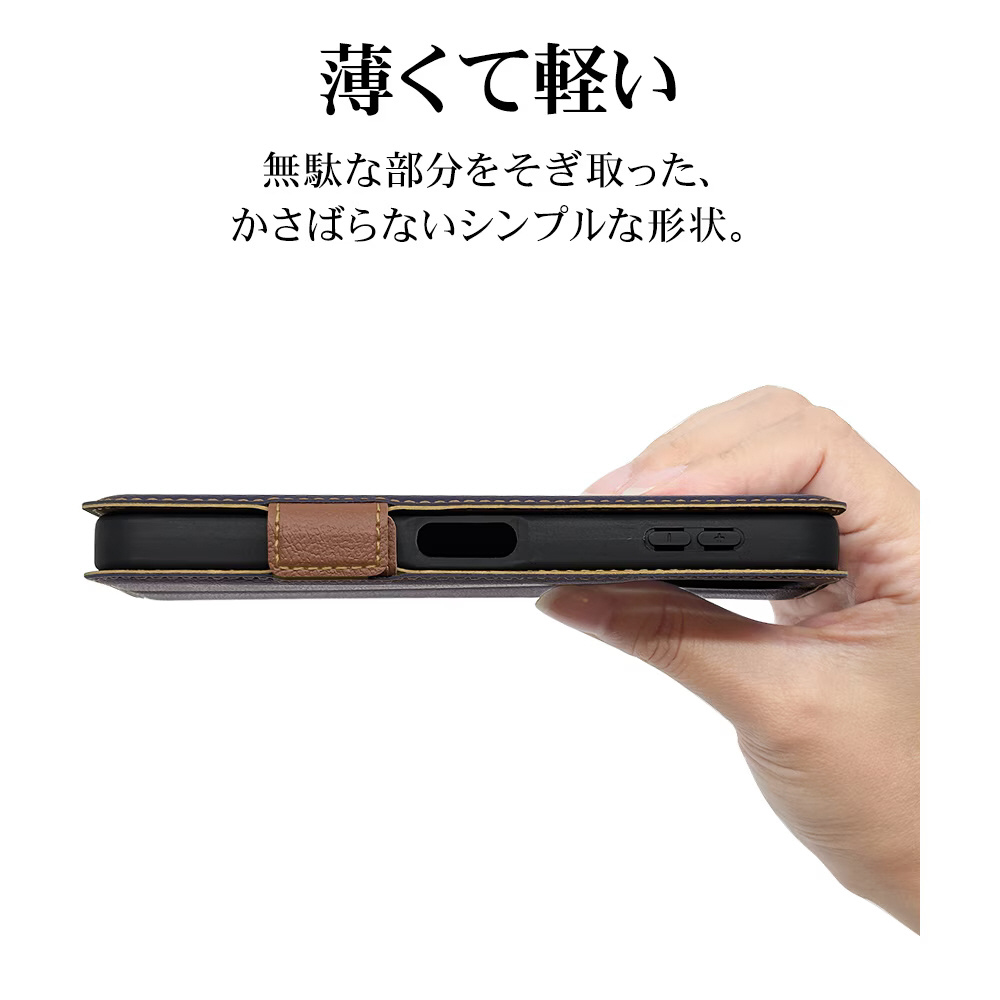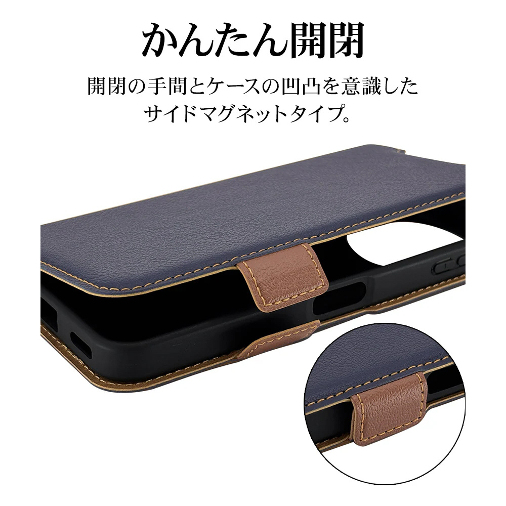 AQUOS sense10 薄型手帳サイドマグネットケース ネイビー×ブラウン 9245AS10BSMNVB