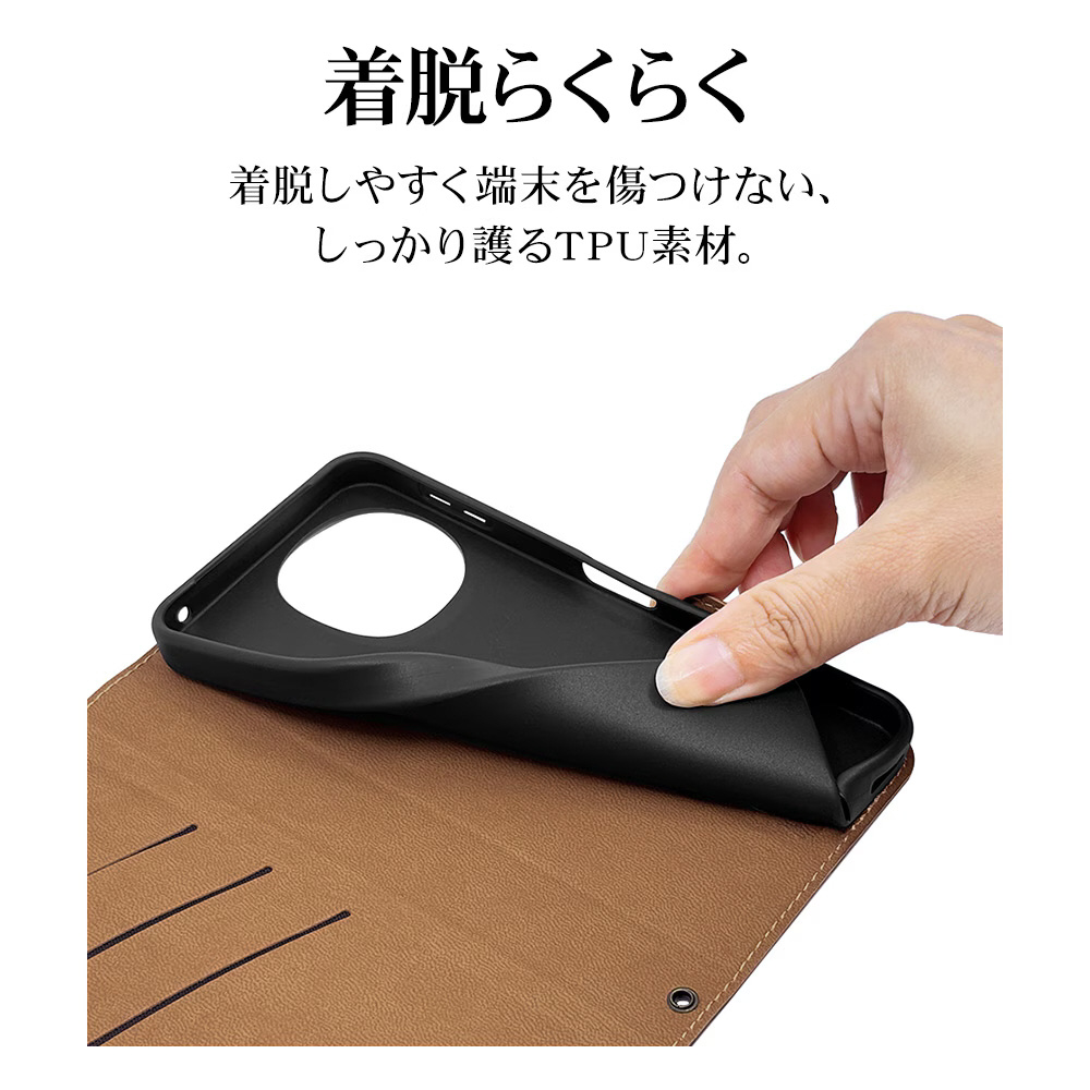 液晶画面側と背面側の両面を保護できる薄型で持ちやすい手帳型ケースです。