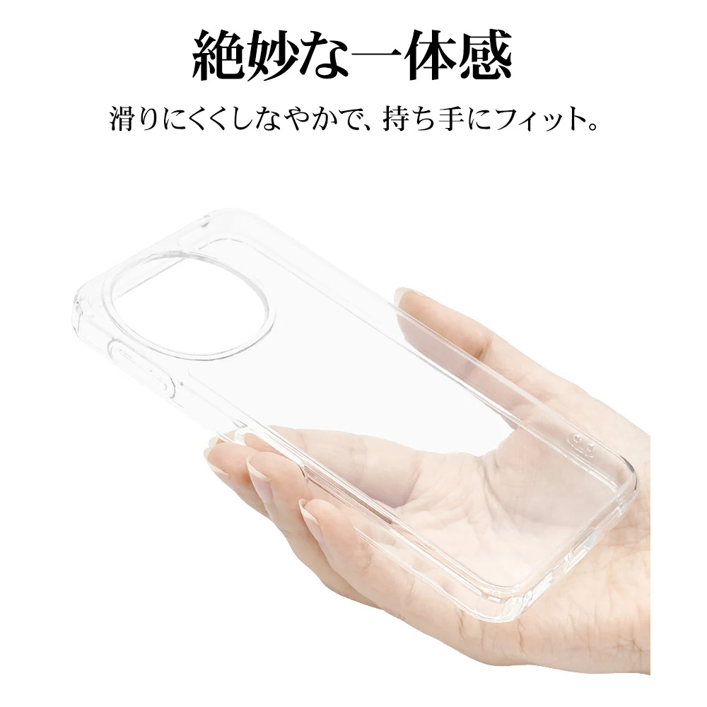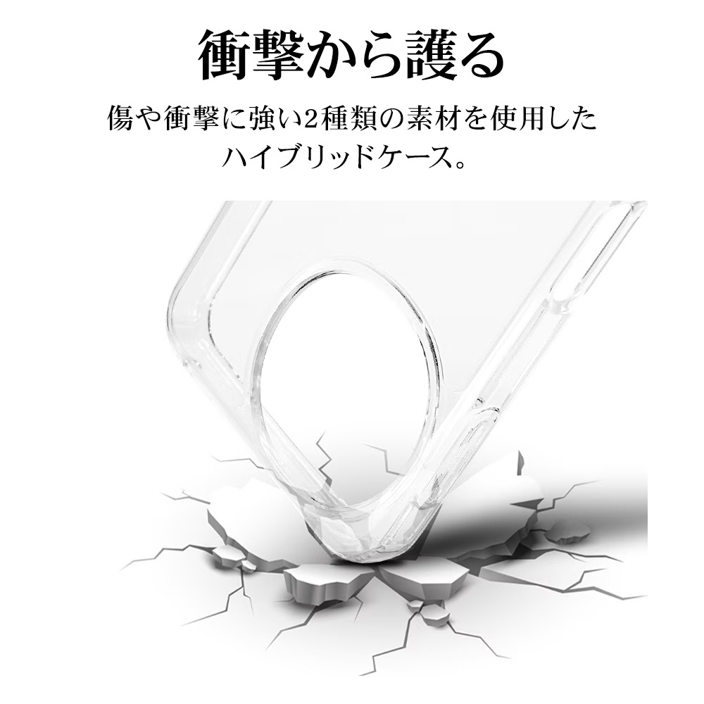 ●側面は弾力と柔軟性を兼ね備えたTPU素材で端末を衝撃から保護し、着脱も簡単です。※衝撃吸収については、一般的なポリカーボネート製ケースと比較した自社検証結果で、無破損、無故障を保証するものではありません。