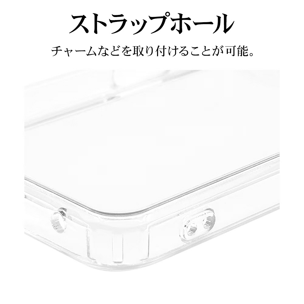 ●チャーム等を取り付けることが可能なストラップホール付き。※本製品のストラップホールを使用する場合は、ストラップのみで宙吊りにするご使用方法はお止めください。 ケースから機器本体が外れて落下し破損や損傷等の原因となります。