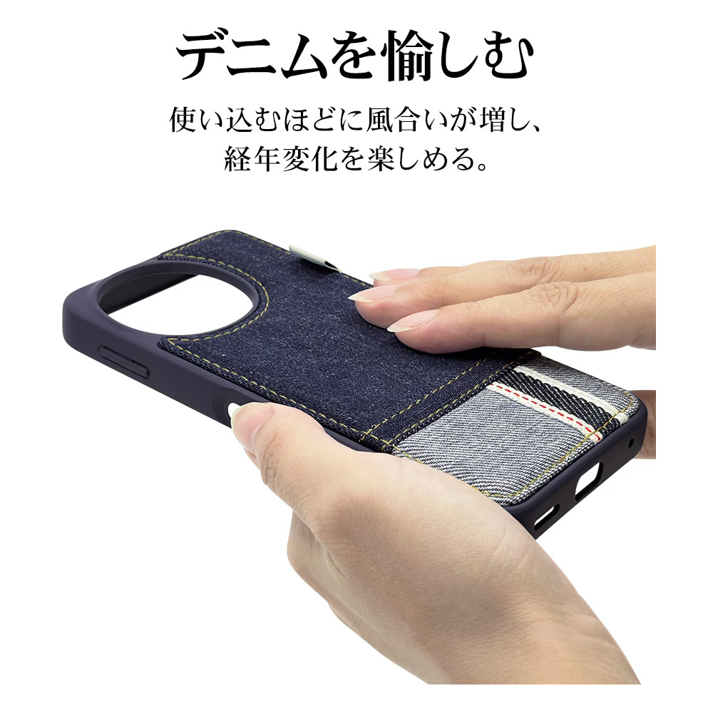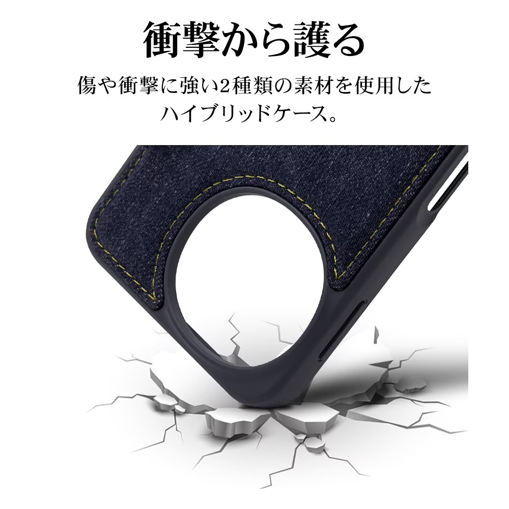 本製品は背面のデニム生地がアクセントのハイブリッド背面ケースです。