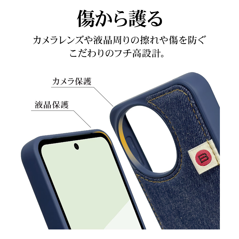 本製品は背面のデニム生地がアクセントのハイブリッド背面ケースです。