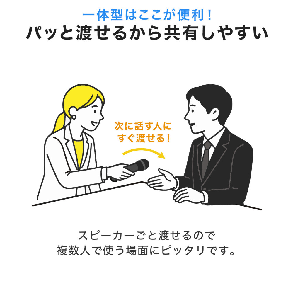 ハンドマイク型 ポータブル拡声器スピーカー15W Bluetooth5.3 内蔵電池6時間 USB-C充電 授業 案内 イベント MM-SPAMP20