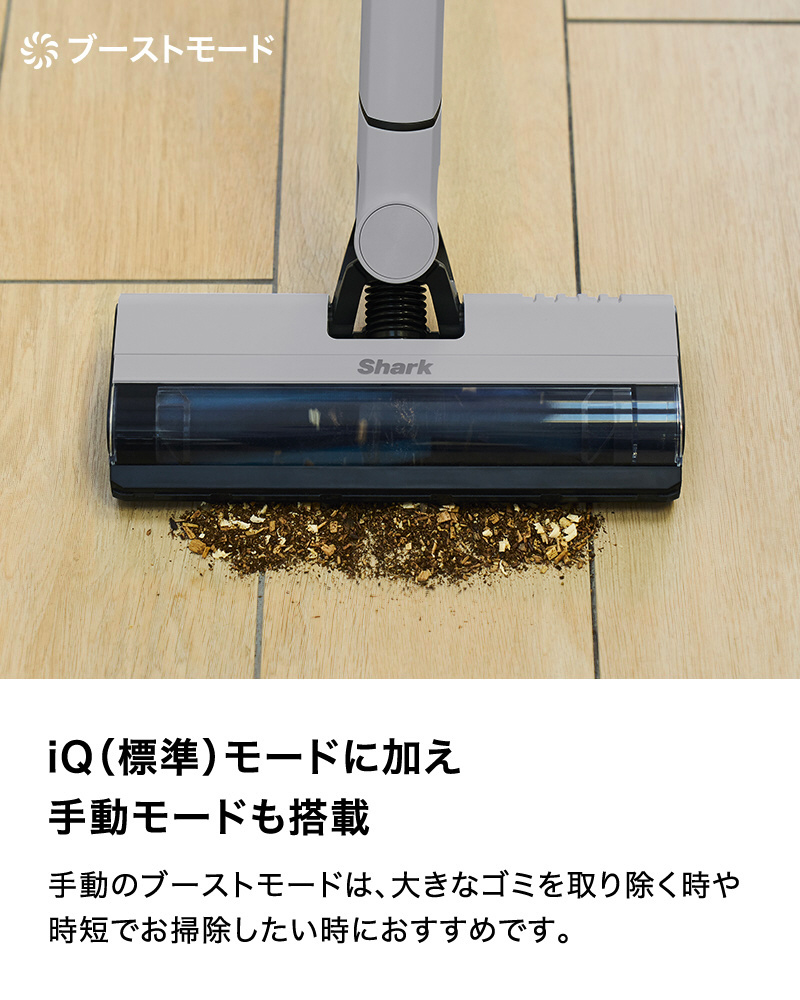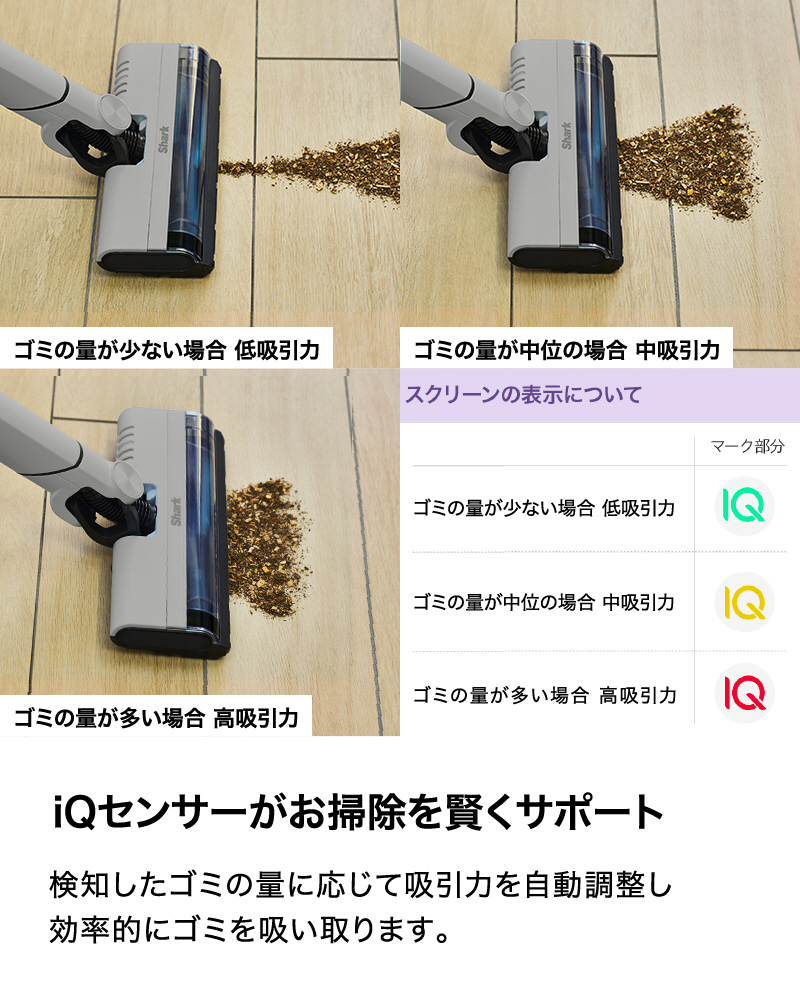 ■iQセンサーがゴミの量に合わせて吸引力を自動調整することで、効率的にお掃除できる
