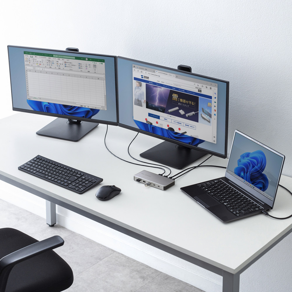 ■USB Type-Cケーブル1本でディスプレイ最大2台へ4K映像出力ができる、HDMI映像出力端子を2ポート搭載したUSB Type-Cドッキングステーションです。