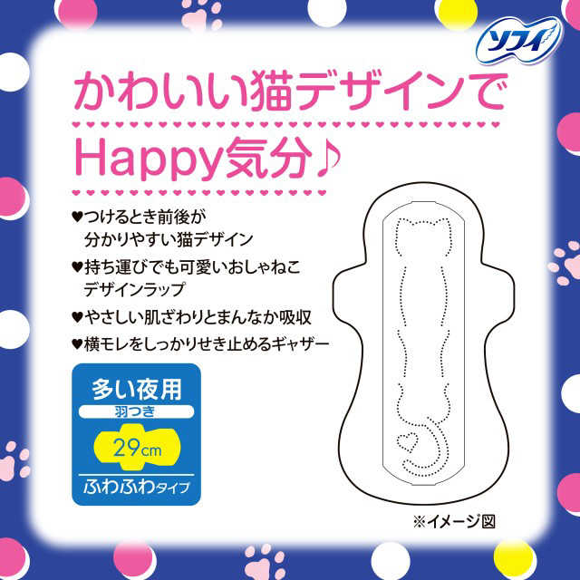 ●つけるとき前後が分かりやすい猫デザインと持ち運びでも可愛いおしゃねこデザインラップを新搭載!