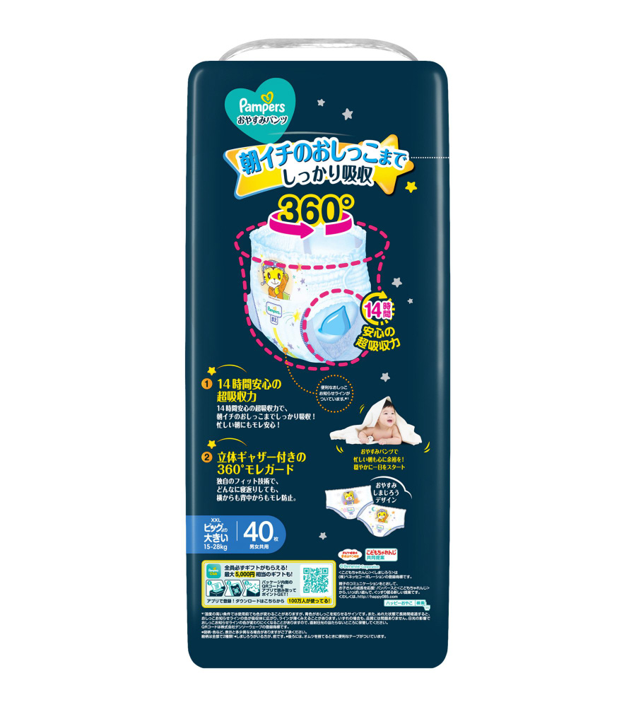 【ケース販売】Pampers(パンパース) おやすみパンツ ウルトラジャンボビッグより大きい(15-28kg)40枚×3個