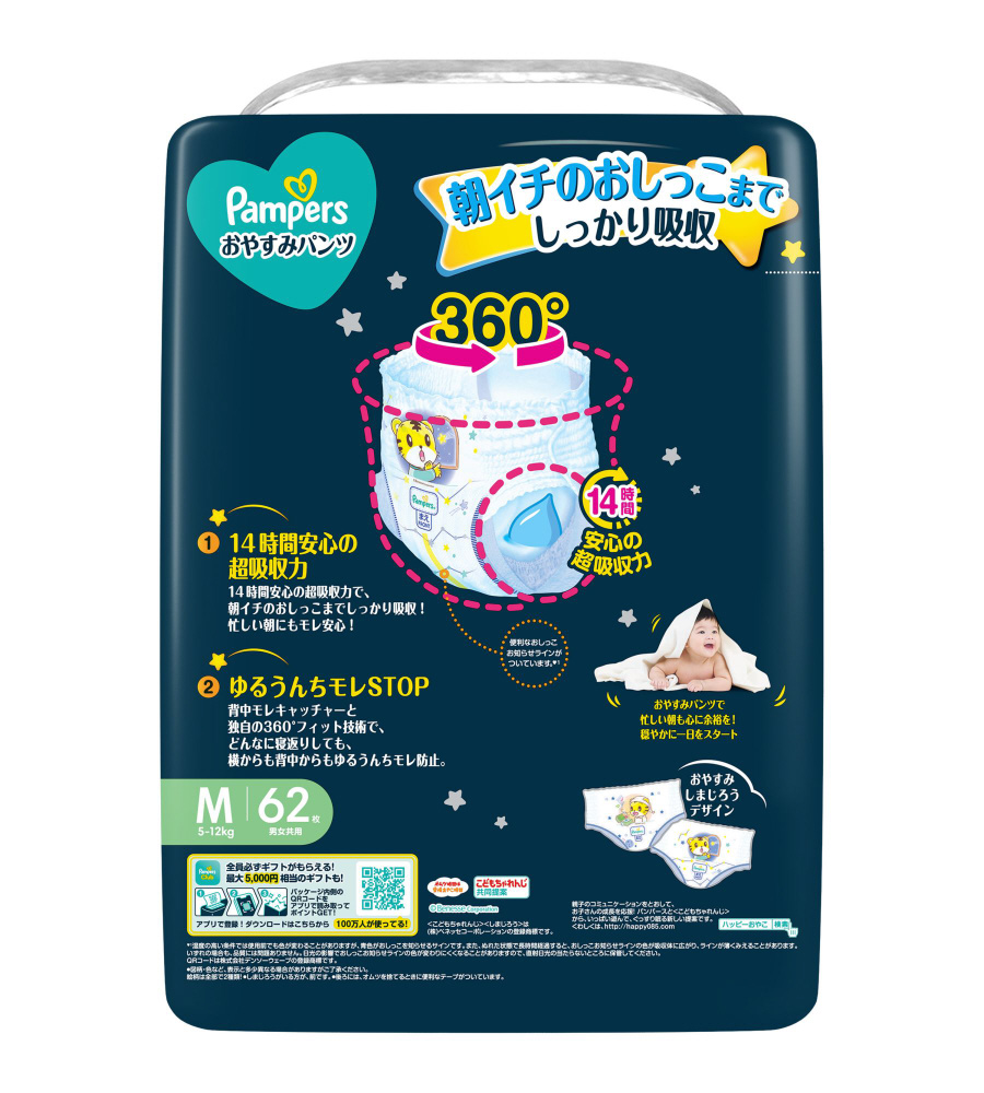 【ケース販売】Pampers(パンパース) おやすみパンツ ウルトラジャンボM(5-12kg)62枚×3個