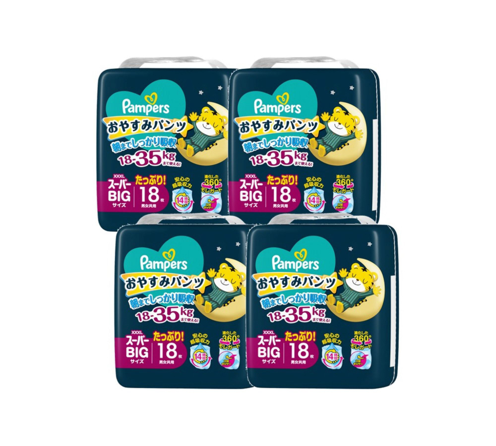 【ケース販売】Pampers(パンパース) おやすみパンツ スーパービッグ(18-35kg)18枚×4個