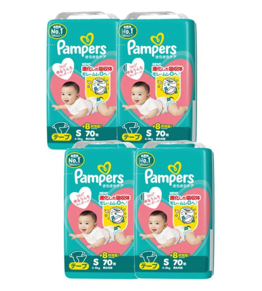 【ケース販売】Pampers(パンパース)さらさらケア テープ  スーパ-ジャンボ S(4-8kg)70枚×4個
