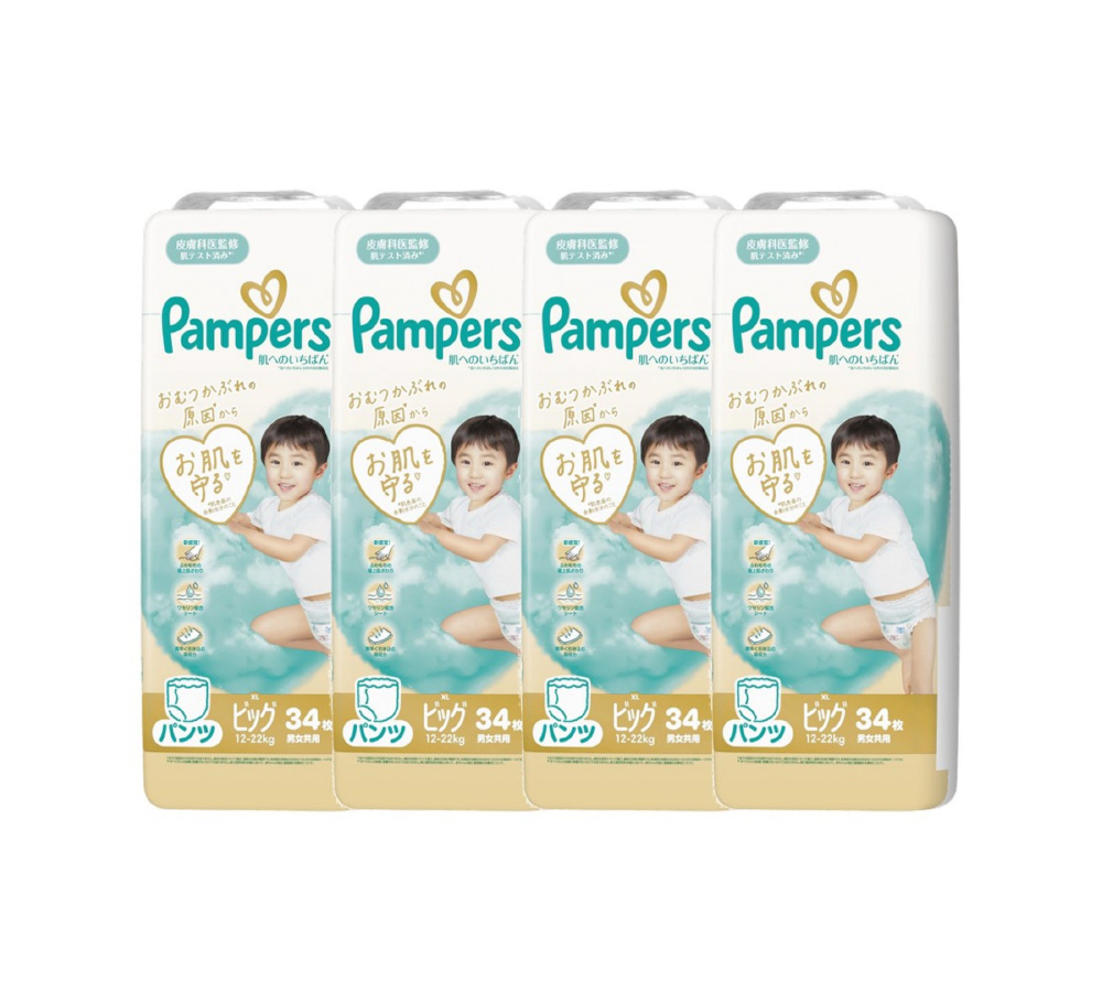 【ケース販売】Pampers(パンパース) 肌へのいちばんパンツ スーパージャンボビッグ(12-22kg)34枚×4個