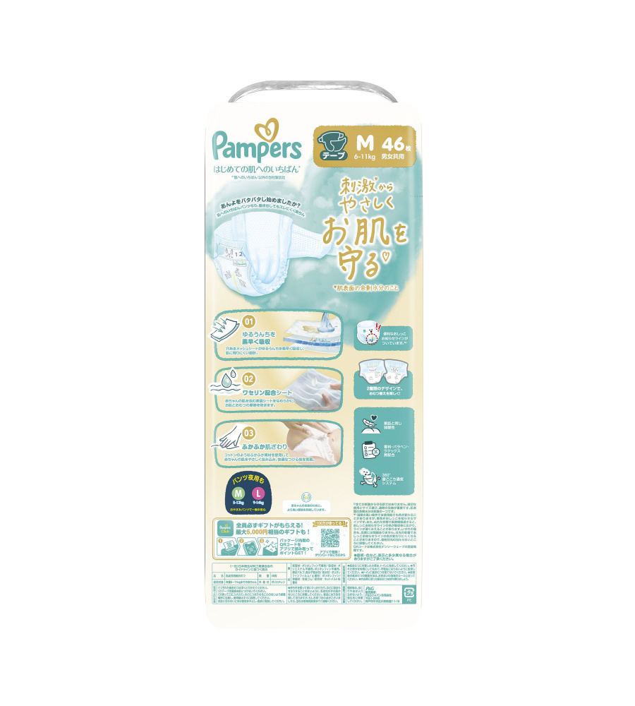 【ケース販売】Pampers(パンパース) はじめての肌へのいちばん スーパージャンボM(6-11kg)46枚×4個