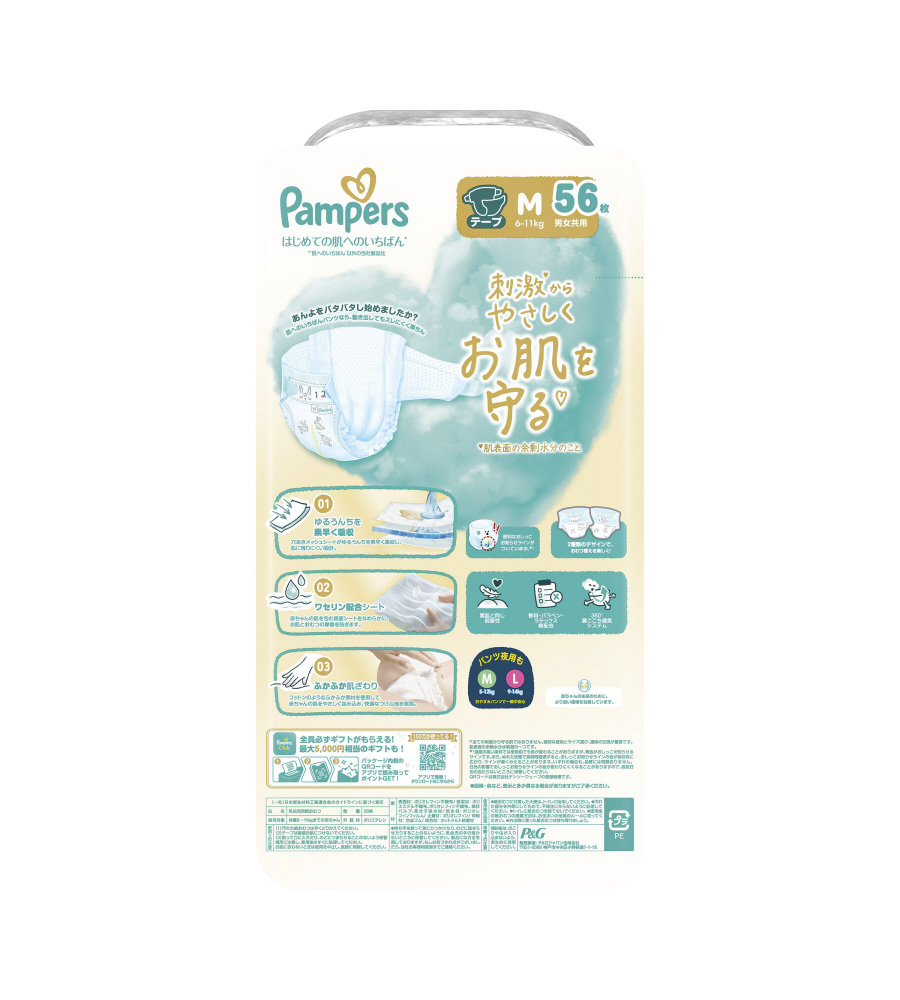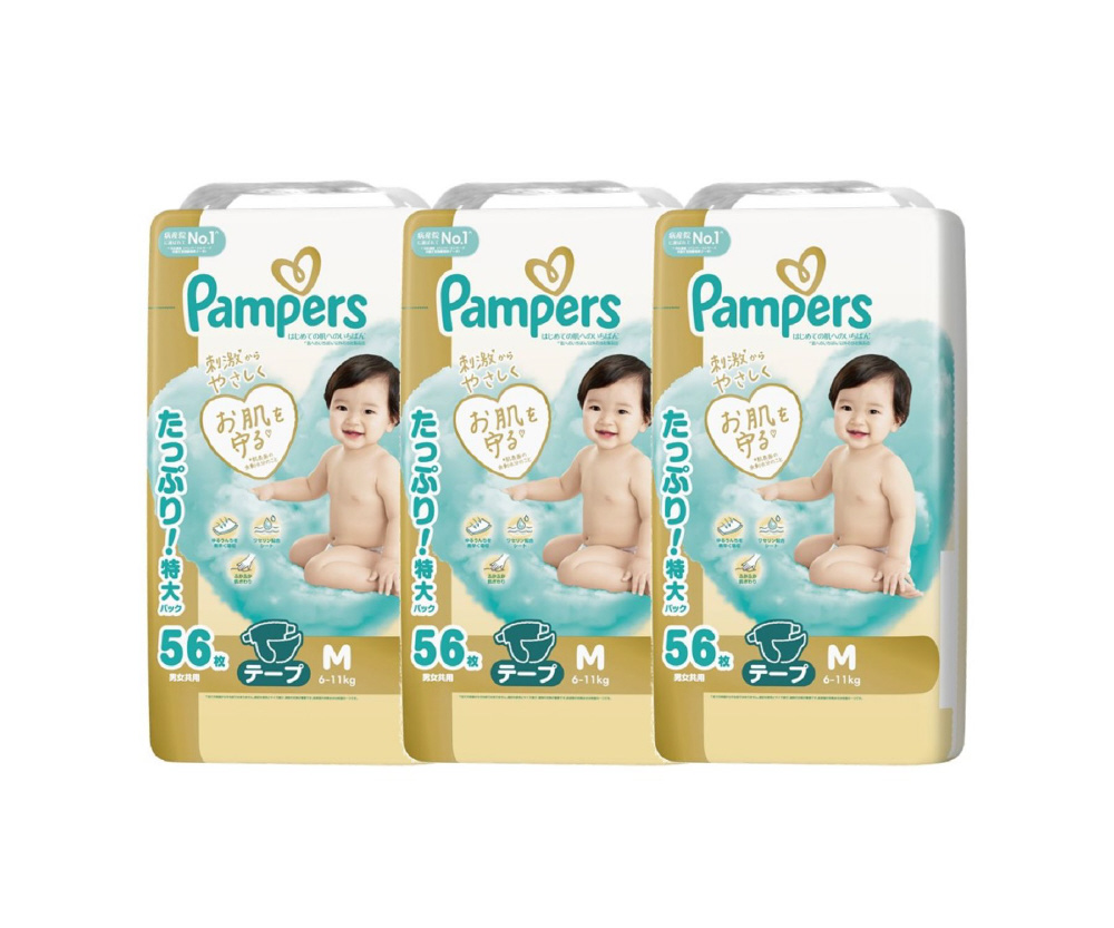 【ケース販売】Pampers(パンパース) はじめての肌へのいちばん ウルトラジャンボM(6-11kg)56枚×3個