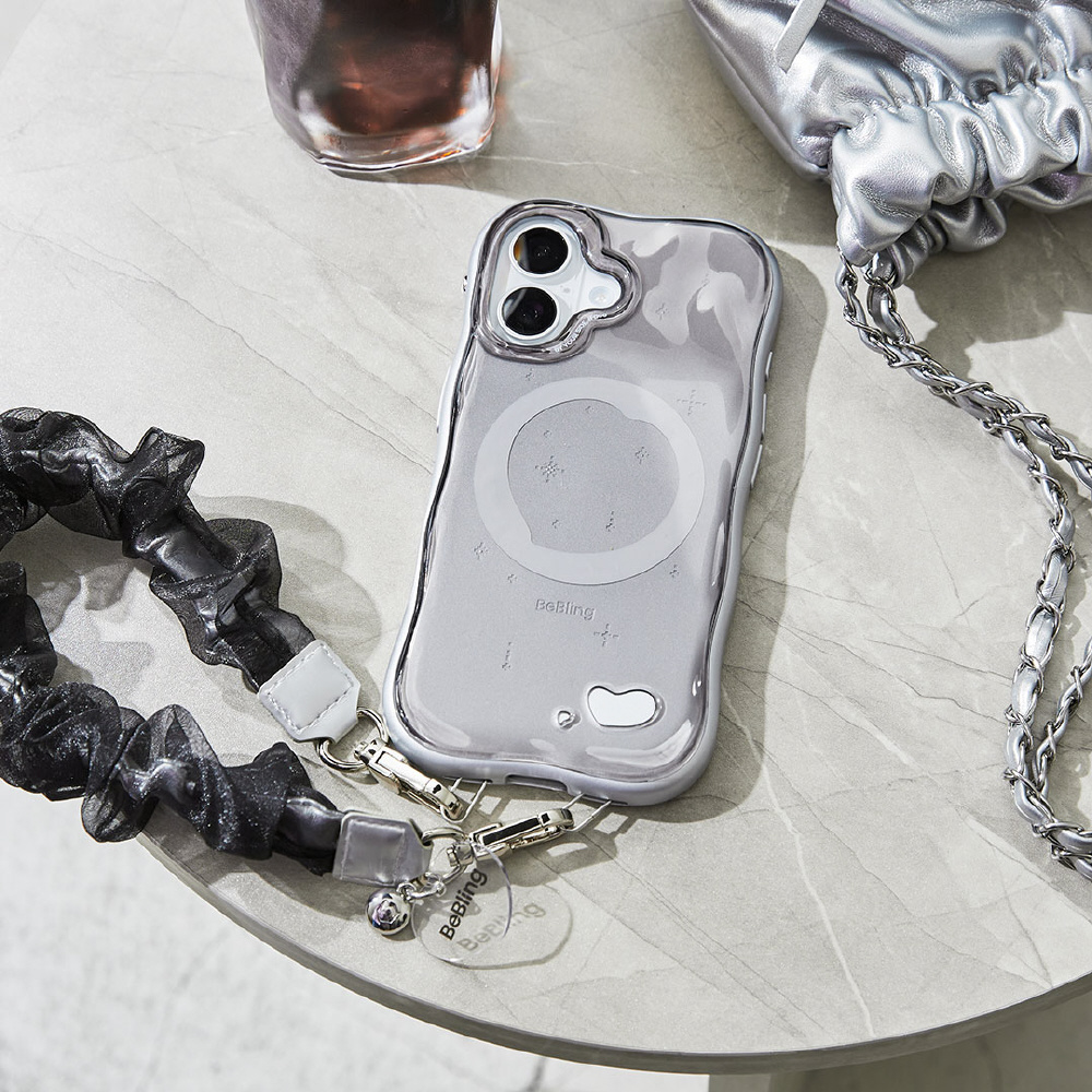 ・シルバーカラーに重なるクリアな背面の対比がアクセント